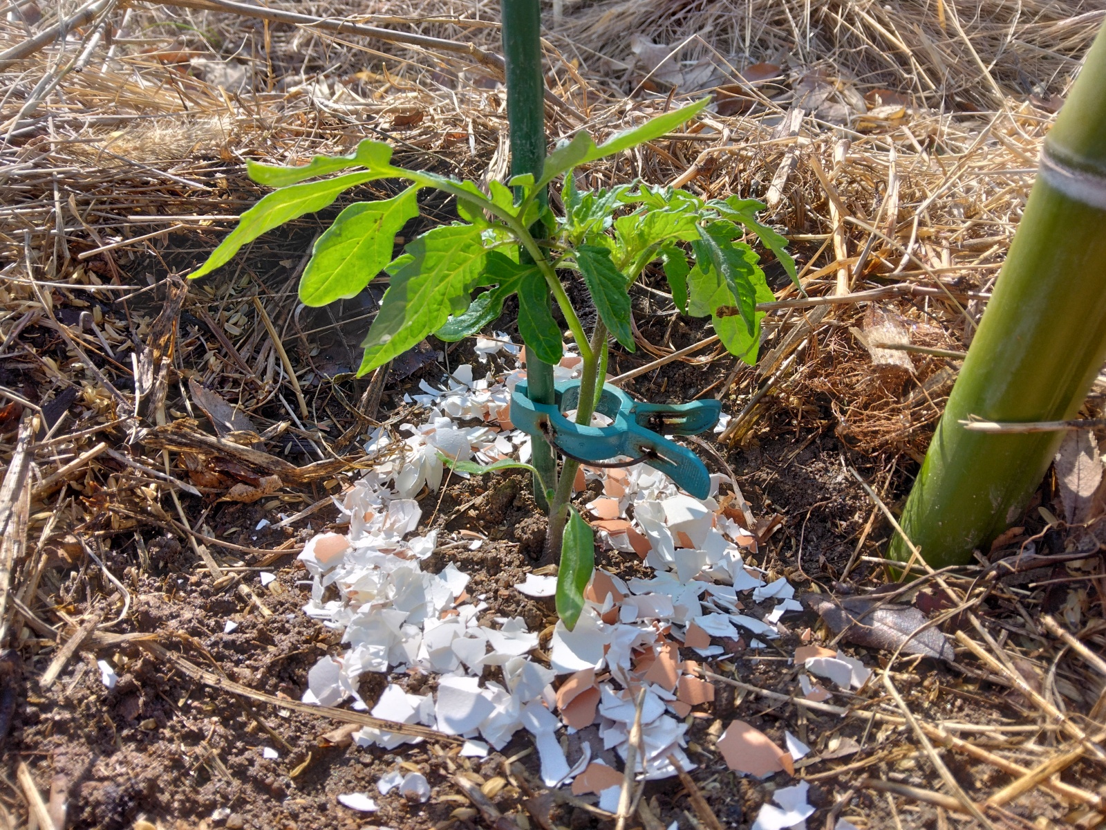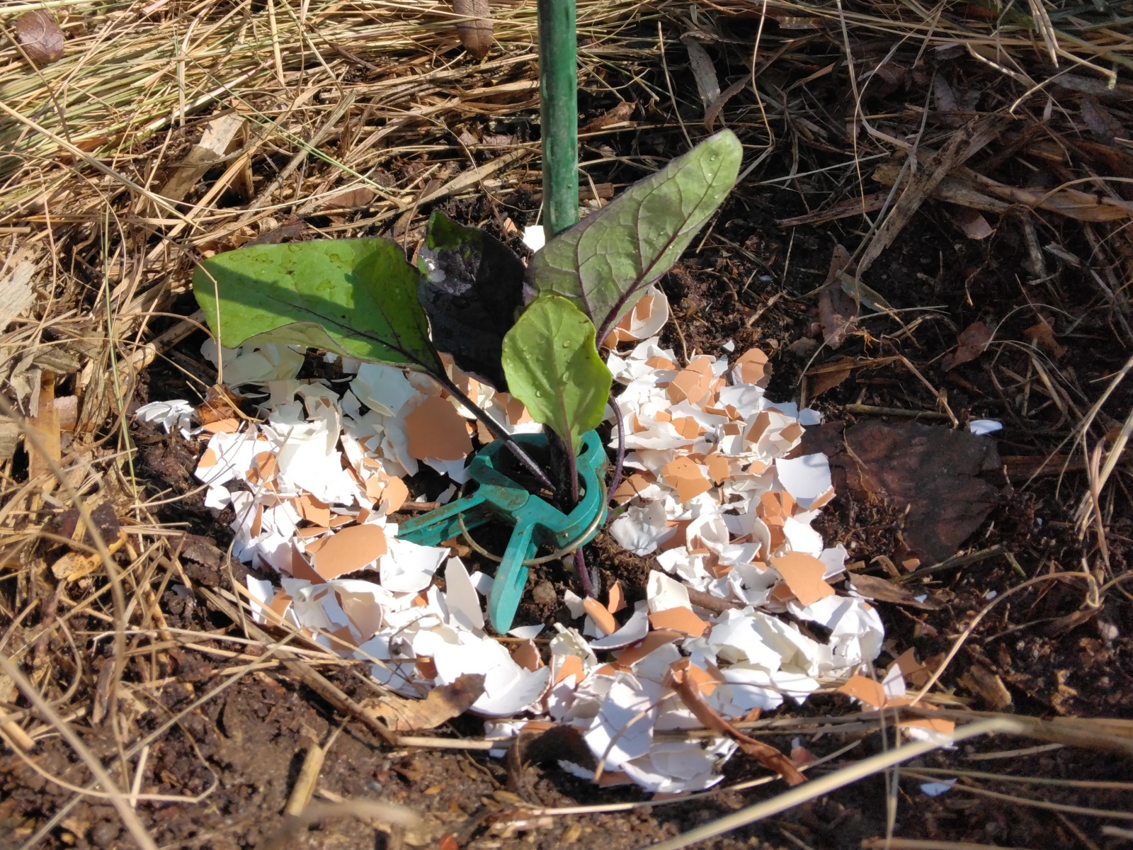 玉子の殻で苗を囲む理由は虫よけで、春の暴君、ヨトウムシ対策。あいつらは、去年もナスの苗を食いやがったものだから、ダイエット中に集めた殻を、大いなる嫌がらせとして敷き詰めてやった。というのも、ヨトウムシは玉子の殻の尖った部分が嫌いらしく、これが虫よけになるのだそうだ。これまで、どれほどのキュウリやプリンスメロンの苗がやられたか……この実験で効果があれば、思う存分、玉子の殻を撒いてやる!