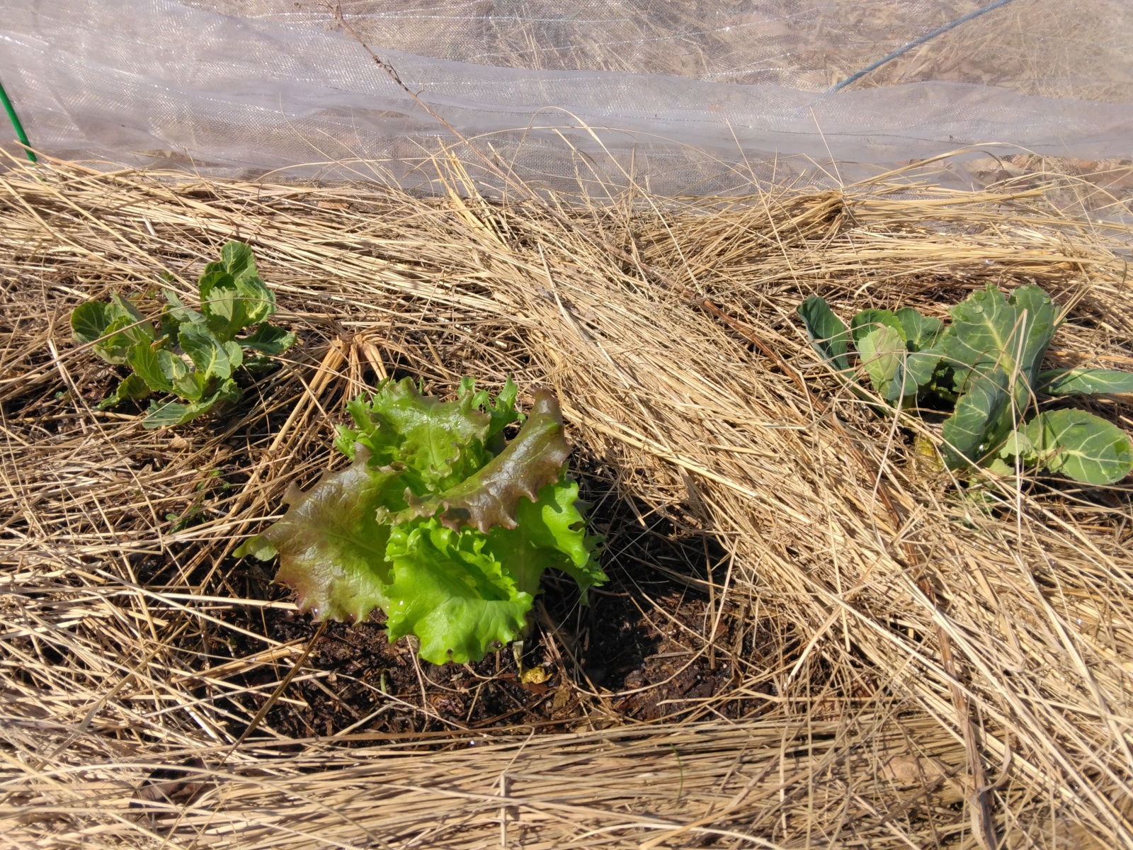 そこで、キャベツと相性のよいレタスの種を仕込んでみたけれど、気温が低くて発芽をしない。そこでダイキの苗を、キャベツとキャベツとの間に植えてみた。やっぱり本丸はキャベツだけれど、ほどよくレタスにも育ってほしいものだ(笑)